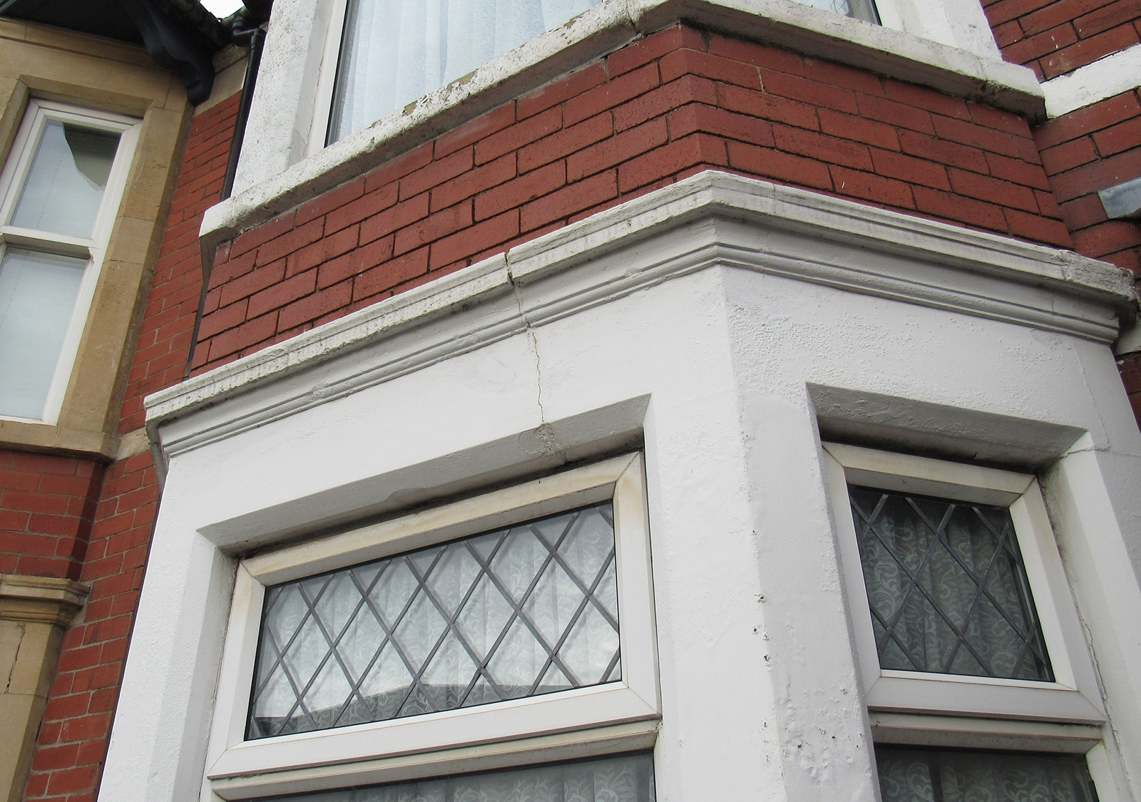 Minor outward movement was noted affecting the cast stone lintels and jambs to the bay window,