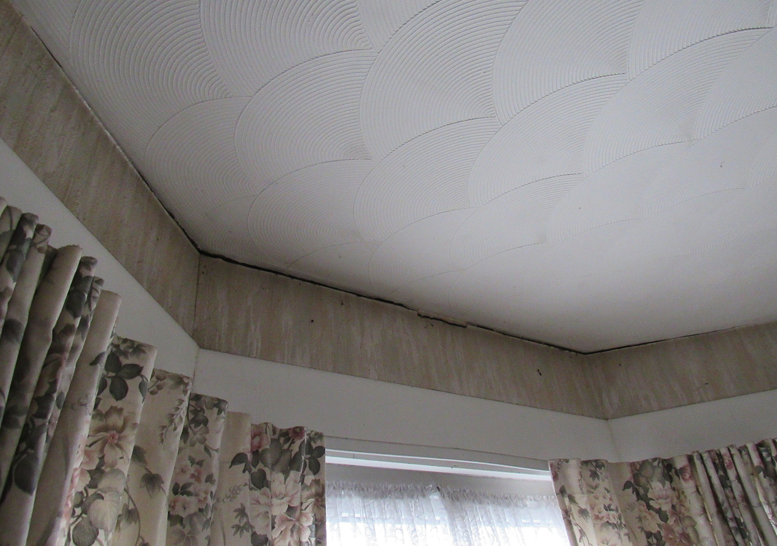 A separation gap of approximately 20mm was noted between the ceiling line and the bay window