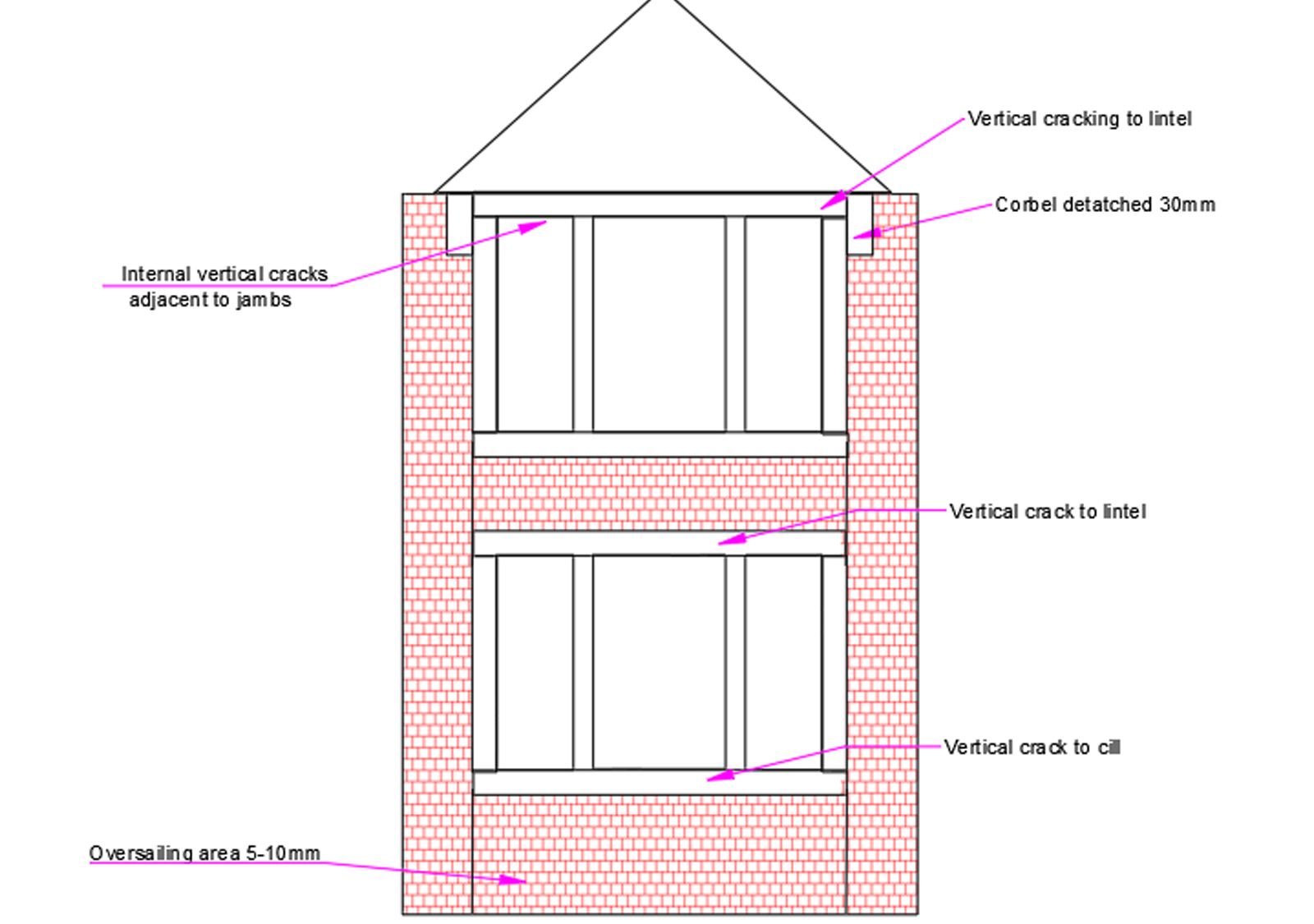 Minor outward movement was noted to the bay window plinth, with an oversail of approximately